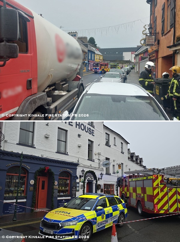 Scene of a gas leak on the Glen in Kinsale, County Cork on Wednesday 7th January. Kinsale Fire station along with Carrigaline Fire station blocked off the road and evacuated local buildings along with Gardaí.