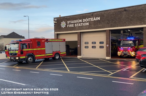 Leitrim County Fire Service Carrick-on-Shannon Stations' Alpha 1 (Spare) and Bravo 1 seen turning out from station on Saturday 20th Deember to an RTC.